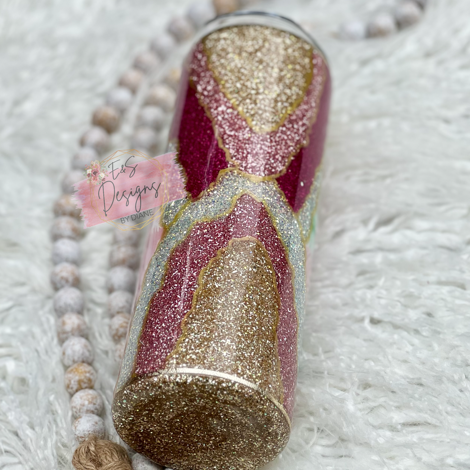 • vinyl, glitter, hand painted geode lines