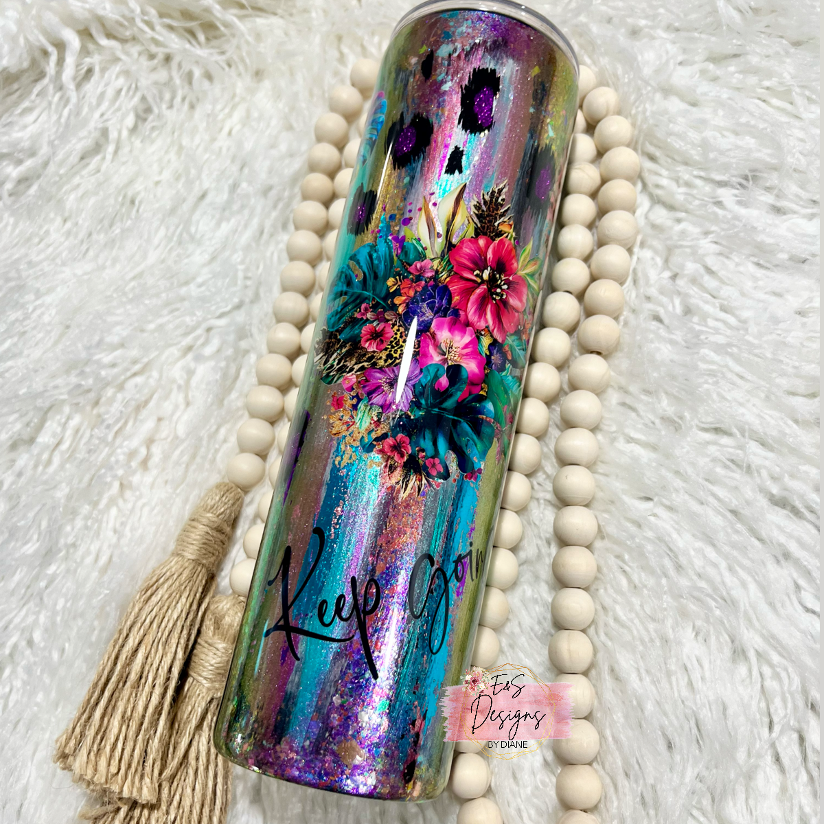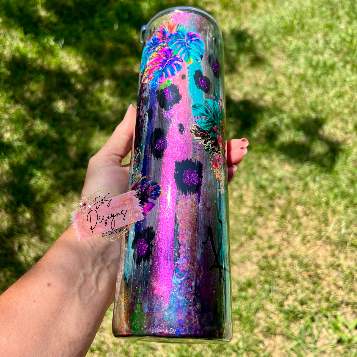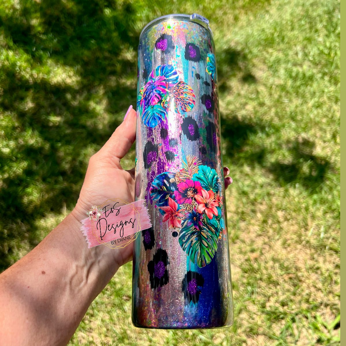 This stainless steel, double-walled 32oz Plump Tumbler keeps drinks hot and cold. The design features a throw everything on the tumbler theme lol