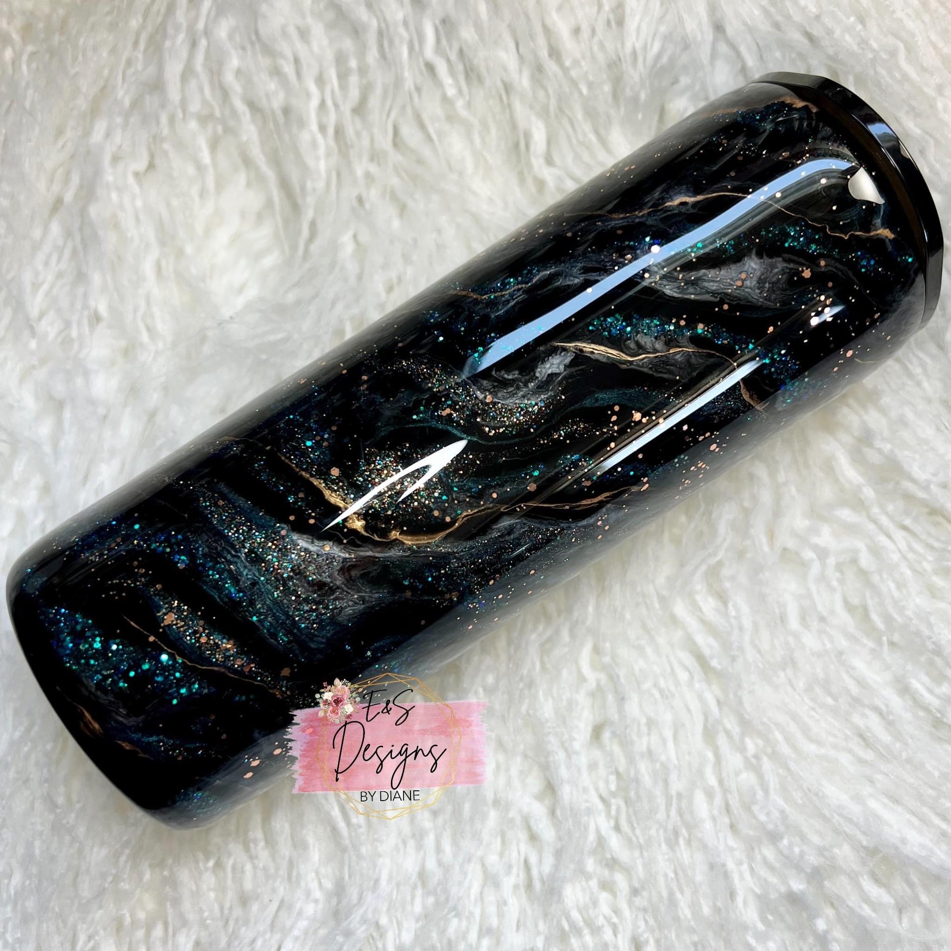 This stainless steel, double-walled 20oz Skinny Straight Tumbler keeps drinks hot and cold. The design features a Milky Way design